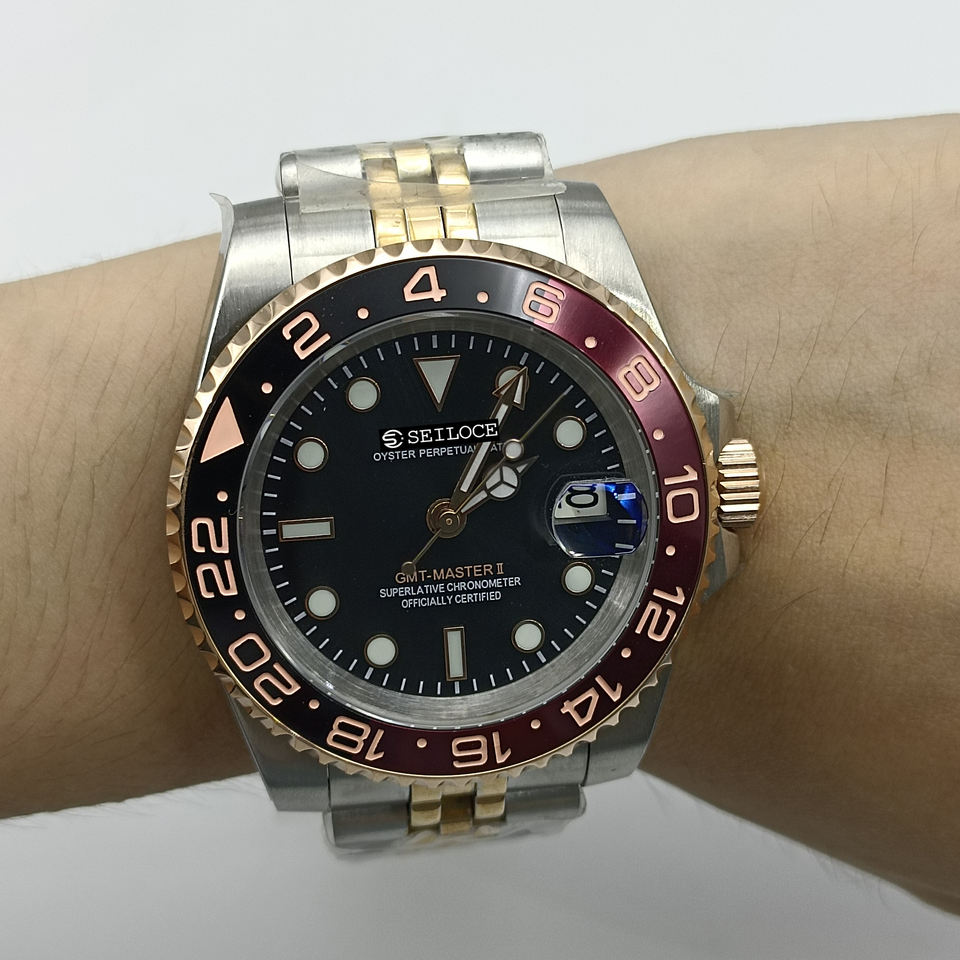 นาฬิกาข้อมือหรูหรา NH34 ออโตเมติก GMT กลไกจักรกล กระจกแซฟไฟร์ สายสแตนเลสสตีล 20 มม. ดีไซน์เรืองแสง กันน้ำ พร้อมเสน่ห์เฉพาะตัว