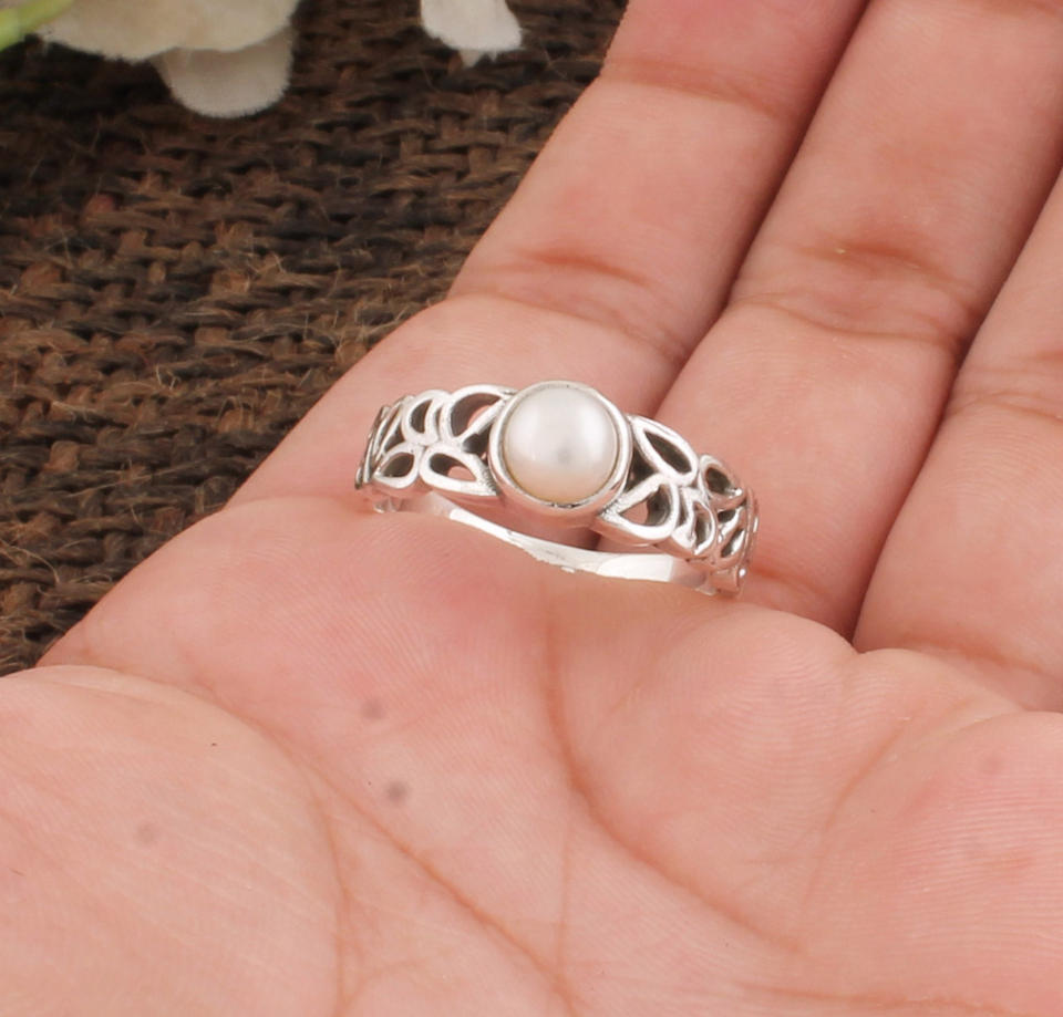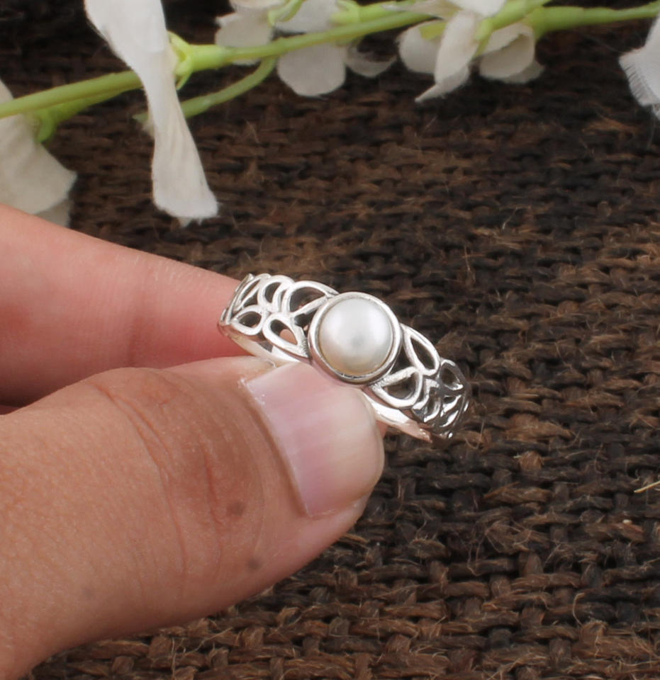 หรูหราธรรมชาติ AAA ความเงางามสูงสีขาวมุก 925 เงินสเตอร์ลิงแหวนหมั้นแหวนแต่งงานสำหรับผู้หญิงคลาสสิกเครื่องประดับชั้นดี