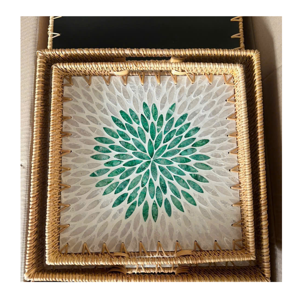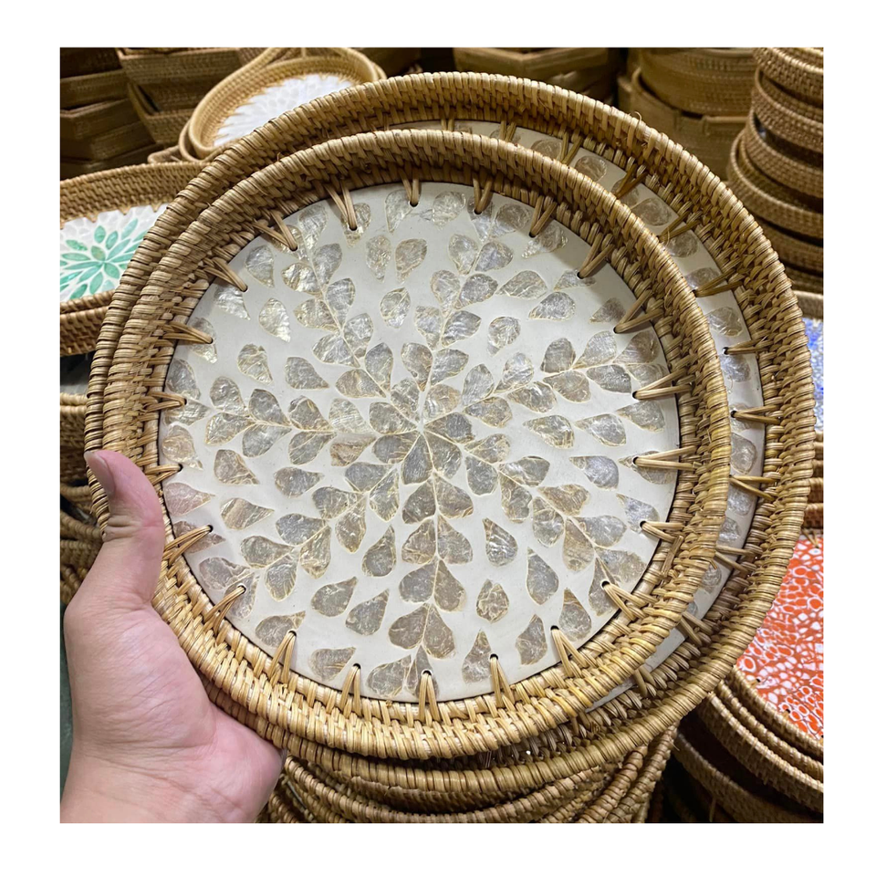 ถาดเสิร์ฟหวายธรรมชาติสุดหรู ประดับมุก ฝังมุก งานฝีมือ ถาดเสิร์ฟตกแต่ง