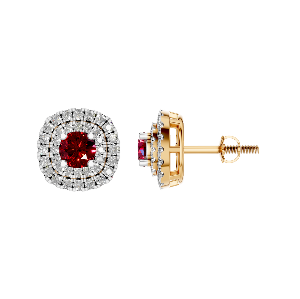 ต่างหูเม็ดกลมทับทิมสีทอง14K 18K ซื้อจำนวนมากขายส่งผลิตตามแบบที่กำหนดเองเครื่องประดับอัญมณีหรูหรา