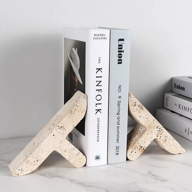 ที่กั้นหนังสือหินธรรมชาติสุดหรู สไตล์วบิซาบิ ทำด้วยมือจากหินทราเวอร์ทีน สำหรับตกแต่งห้องนั่งเล่น ห้องรับประทานอาหาร สำนักงานที่บ้าน และห้องสมุด