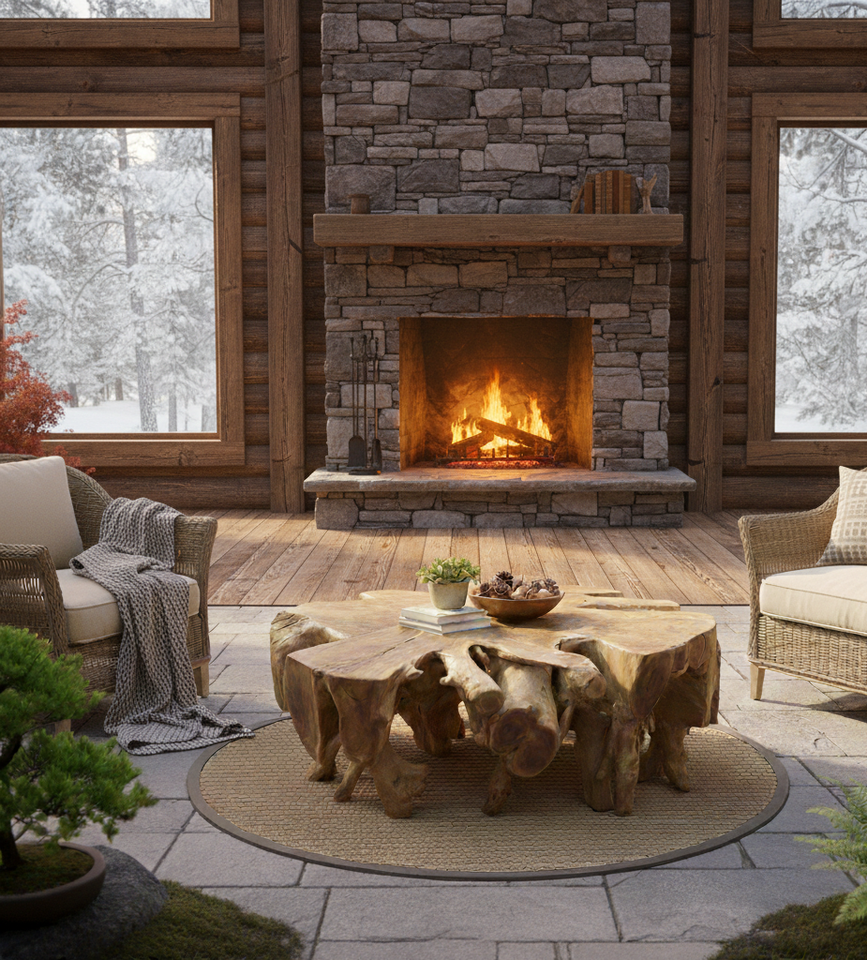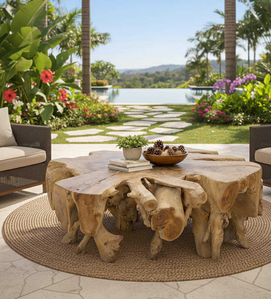 โต๊ะกาแฟไม้สักธรรมชาติสุดหรู ฐานไม้แกะสลัก ท็อปกระจก ดีไซน์ร่วมสมัย สำหรับตกแต่งภายในสุดพิเศษ