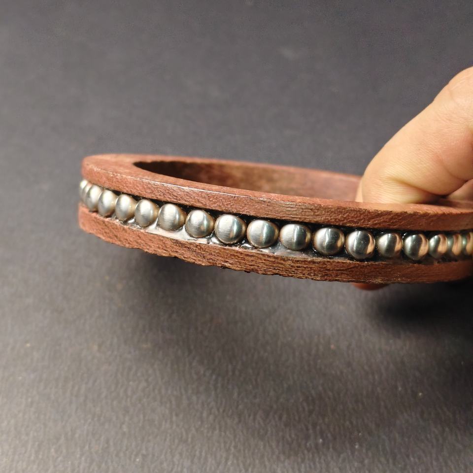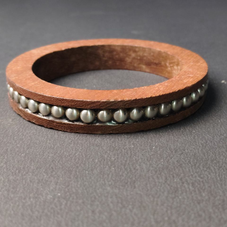 กำไลข้อมือไม้ธรรมชาติสุดหรู ประดับขอบด้วยลูกปัดเคลือบมุก - กำไลไม้ผสมผสานวัสดุหลากหลายแบบไม่ซ้ำใคร - สไตล์โบโฮชิคสำหรับผู้หญิง