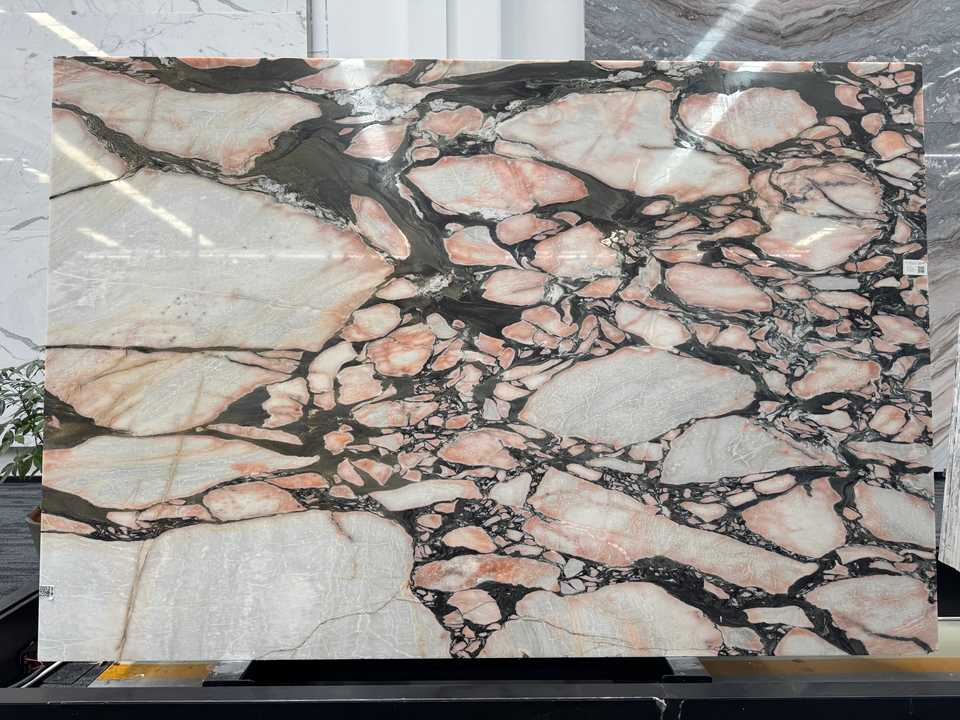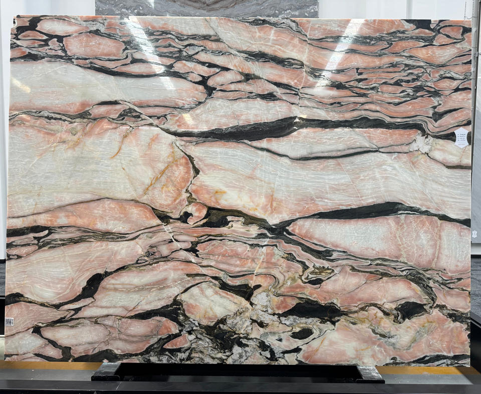 ชื่อ:Bulgari แผ่นหินอ่อนสีชมพูขัดสำหรับเคาน์เตอร์กระเบื้องปูพื้นผนัง