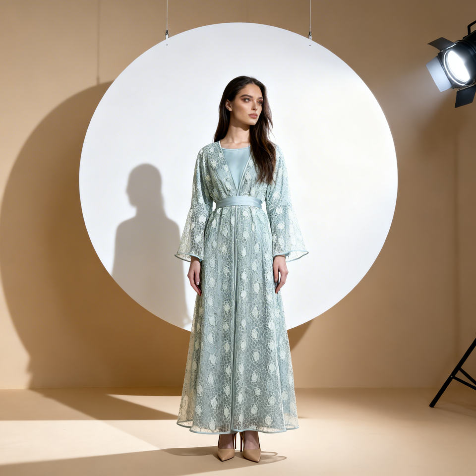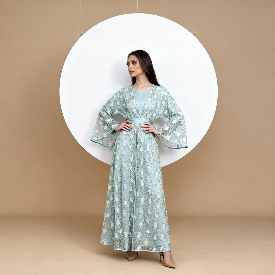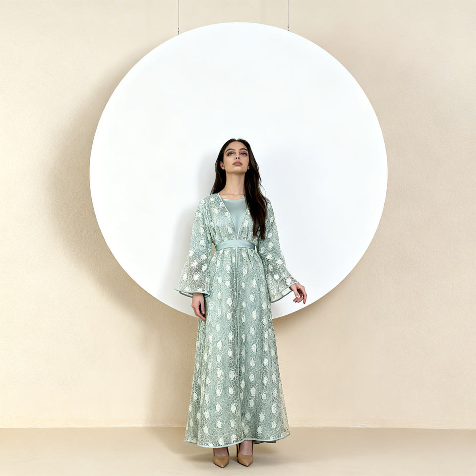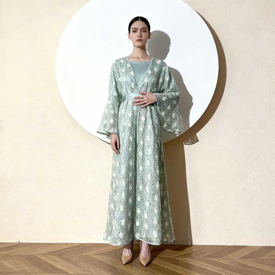 ชุดอาบายะห์สำหรับผู้หญิงมุสลิม ดีไซน์หรูหราทันสมัย ผ้าลูกไม้สั่งทำพิเศษ คุณภาพสูง ผ้าโพลีเอสเตอร์ยืดได้สี่ทิศทาง เหมาะสำหรับโอกาสฤดูร้อน