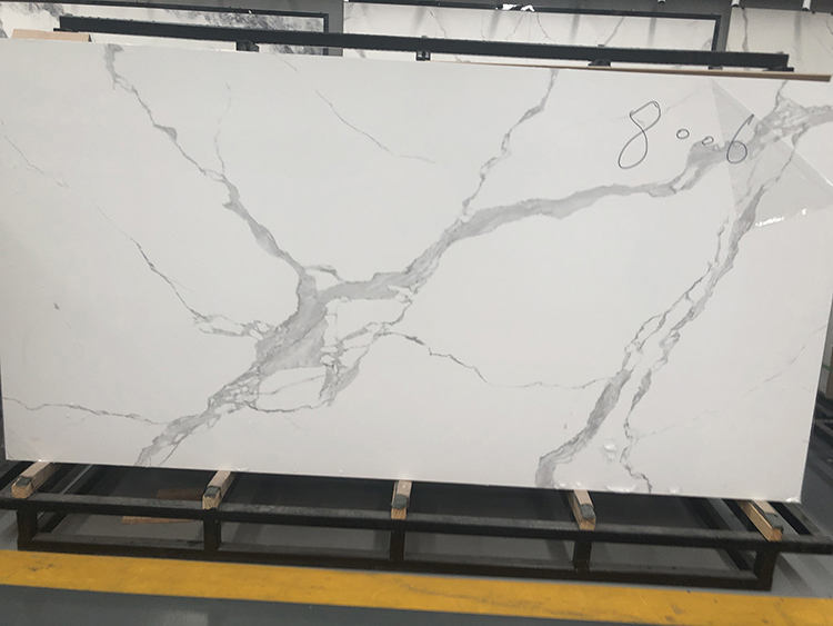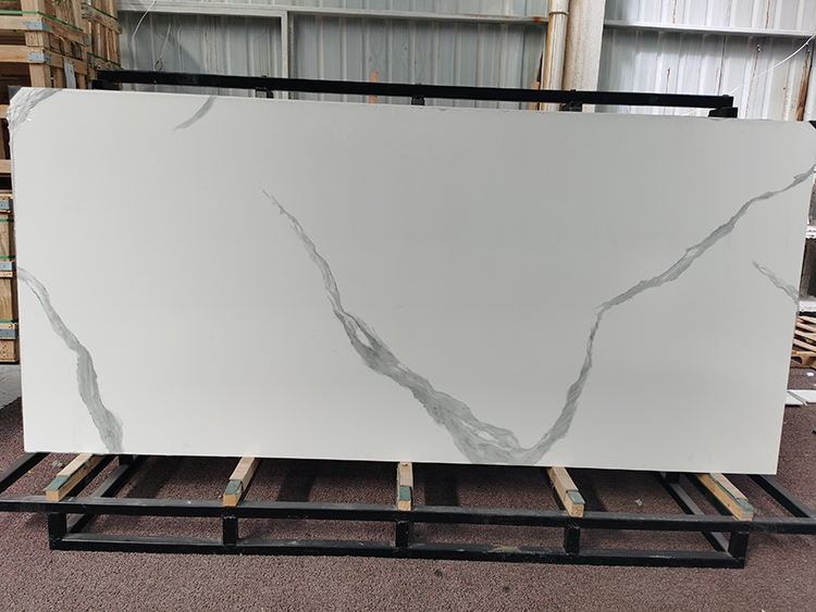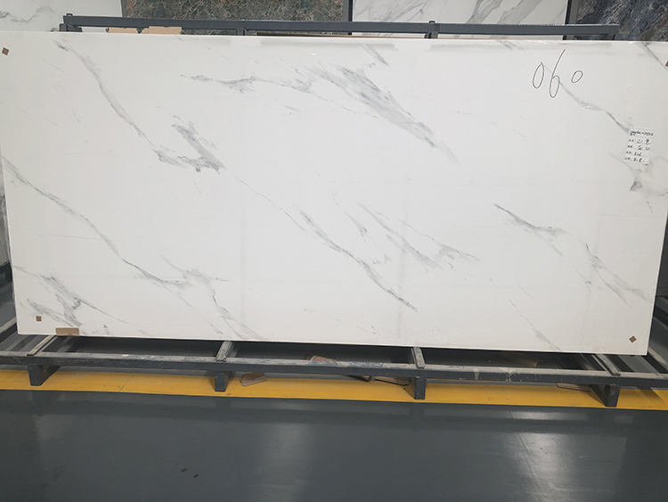 แผ่นหินเผาสีขาวสำหรับโต๊ะอาหาร Calacatta แบบใหม่ทางเทคนิคหรูหรา