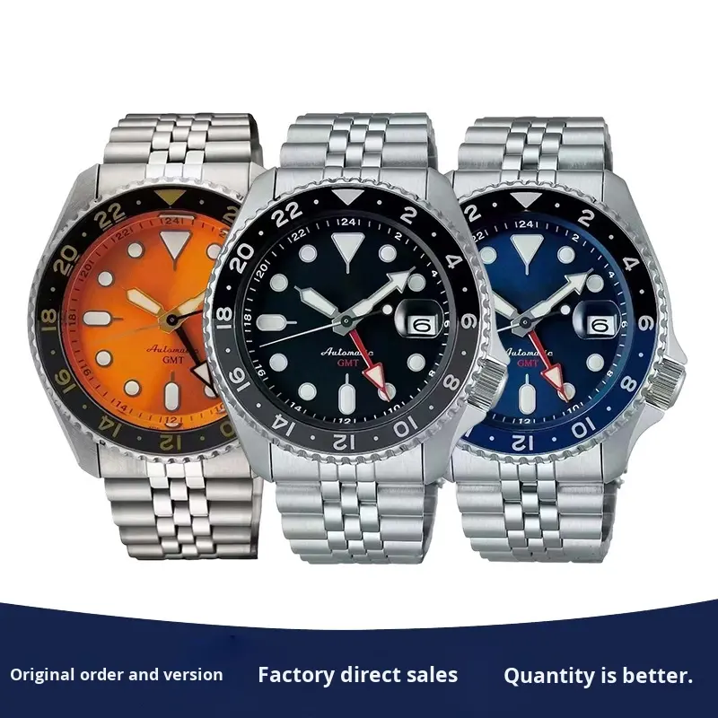 สุดหรูหมายเลข 1 นาฬิกาสปอร์ตจักรกลสำหรับผู้ชาย 5 เรือน ระบบ GMT กันน้ำ หน้าปัดแสดงผลแบบเข็ม สายสแตนเลสขนาด 22 มม. รุ่นสายโซ่ห้าแถว