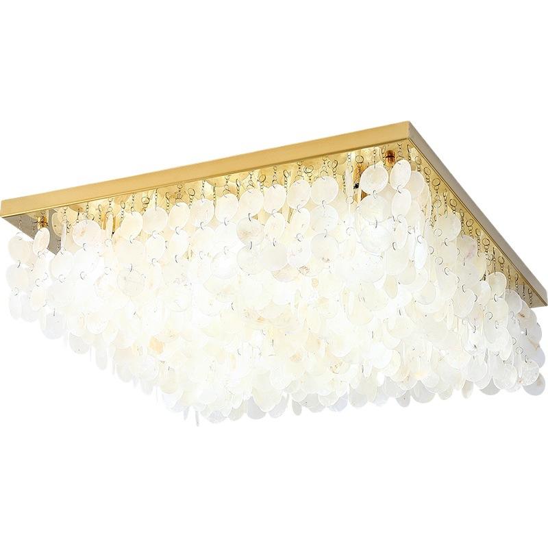 โคมไฟเพดานทรงสี่เหลี่ยมสไตล์นอร์ดิกสุดหรู ให้แสงอบอุ่น ดีไซน์โพสต์โมเดิร์นรูปเปลือกหอย สำหรับห้องนอน ห้องนั่งเล่น ส่งออกต่างประเทศ