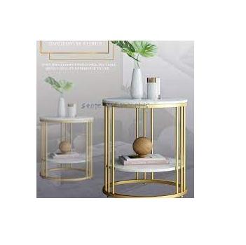 โต๊ะโลหะสีทองทันสมัยสไตล์นอร์ดิกหรูหรารอบมุมกาแฟหินอ่อนโลหะทองหรูหราตารางแสดงเค้กแต่งงาน