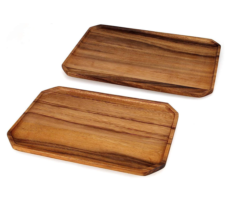 ชุดถาดไม้อะคาเซียแปดเหลี่ยมสุดหรูถาดเสิร์ฟ2ชิ้นถาดคุณภาพระดับพรีเมียมงานแฮนด์เมดสำหรับผู้ซื้อขายส่งมีจำหน่ายในราคาโรงงาน
