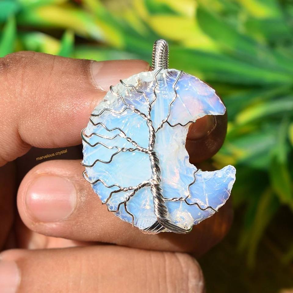 เครื่องประดับจี้รูปพระจันทร์โอปอลสุดหรูสำหรับการทำความสะอาดพลังงานและความสงบภายใน