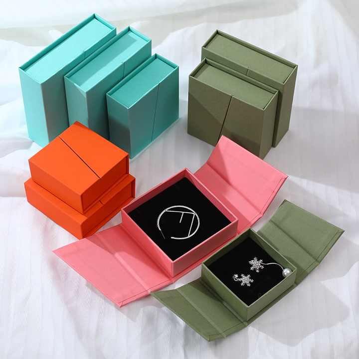 Luxury Open Middle Personalized Cardboard Paper Handmade Earring Jewelry Box Magnetic Flip Cover Necklace Bracelet Packaging
