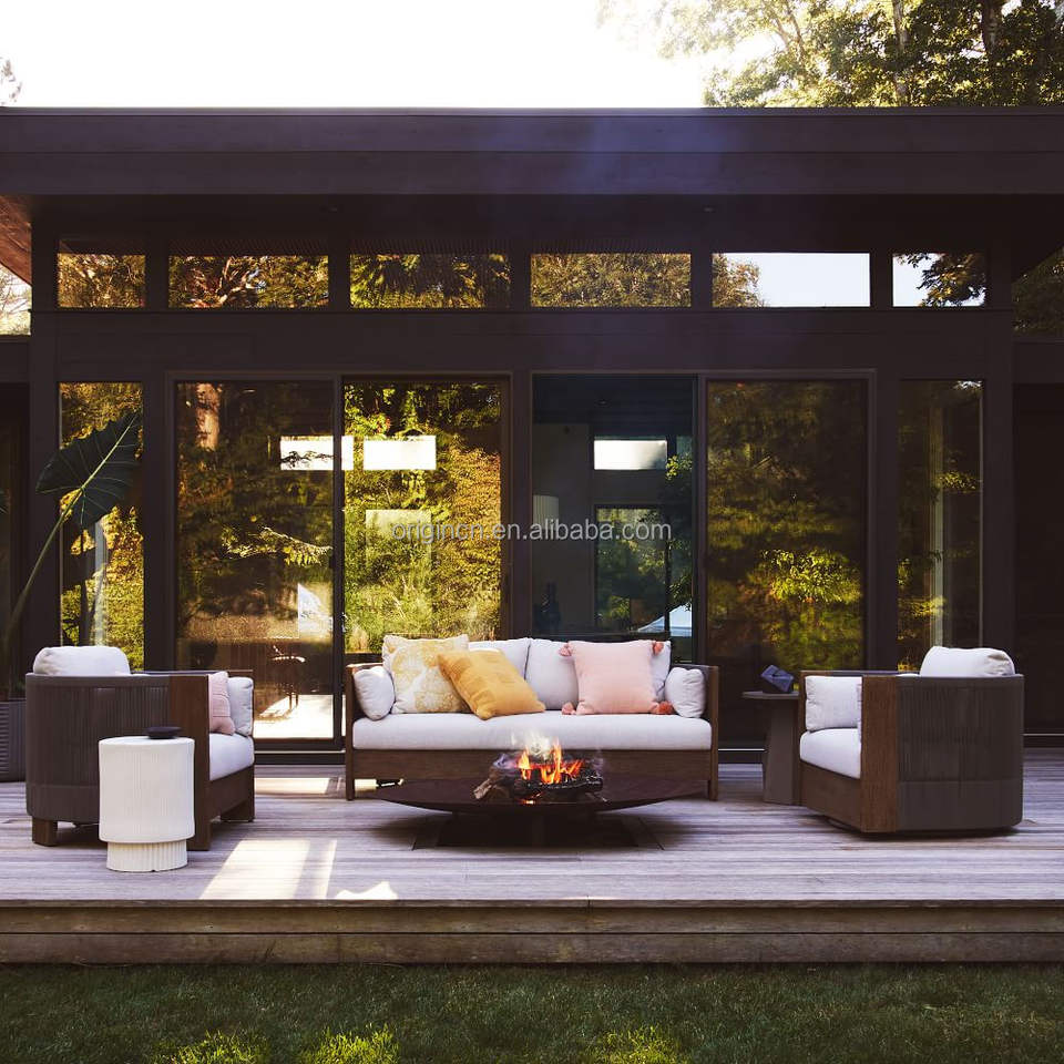 เก้าอี้โซฟาเดี่ยวโครงไม้หุ้มเบาะเชือกถักสำหรับกลางแจ้งสุดหรู