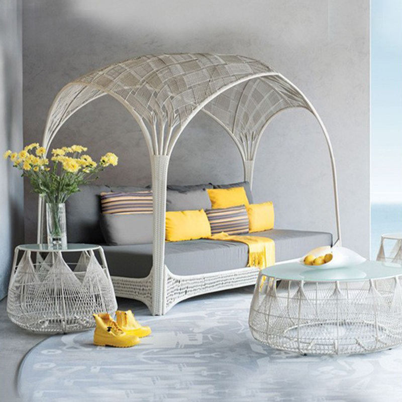 เฟอร์นิเจอร์กลางแจ้งที่หรูหราที่นอนอาบแดดชายหาดปรับที่นอนไฟเบอร์กลาส PE หวาย daybed โซฟาโซฟา