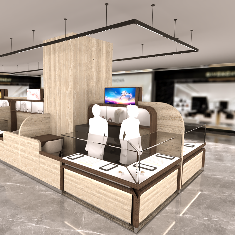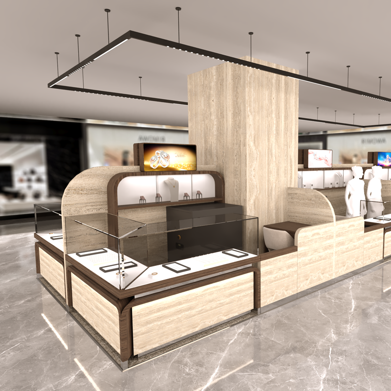 ตู้โชว์เครื่องประดับกลางแจ้งสุดหรูพร้อมไฟ LED การออกแบบร้านค้าเฟอร์นิเจอร์สำหรับโชว์รูมเครื่องประดับ
