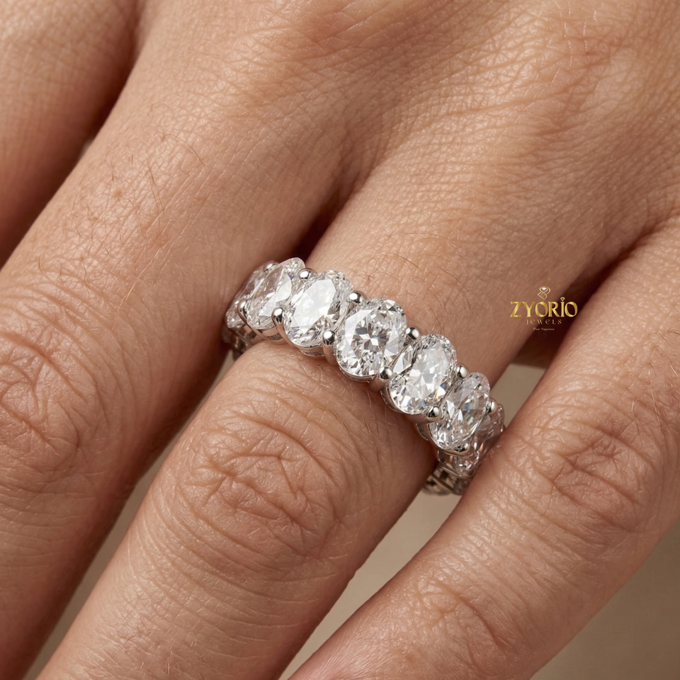 แหวนเพชรทรงรีสุดหรู แหวนเพชรแล็บโกรว์ 14K 18K ทองคำขาว วงแหวนเต็มวง สำหรับงานแต่งงาน วันครบรอบ แหวนผู้หญิง เครื่องประดับชั้นดี