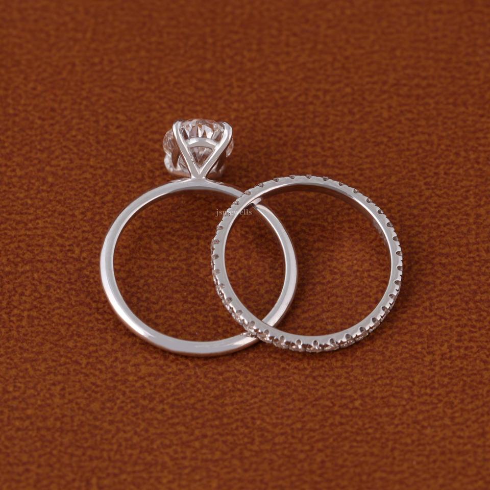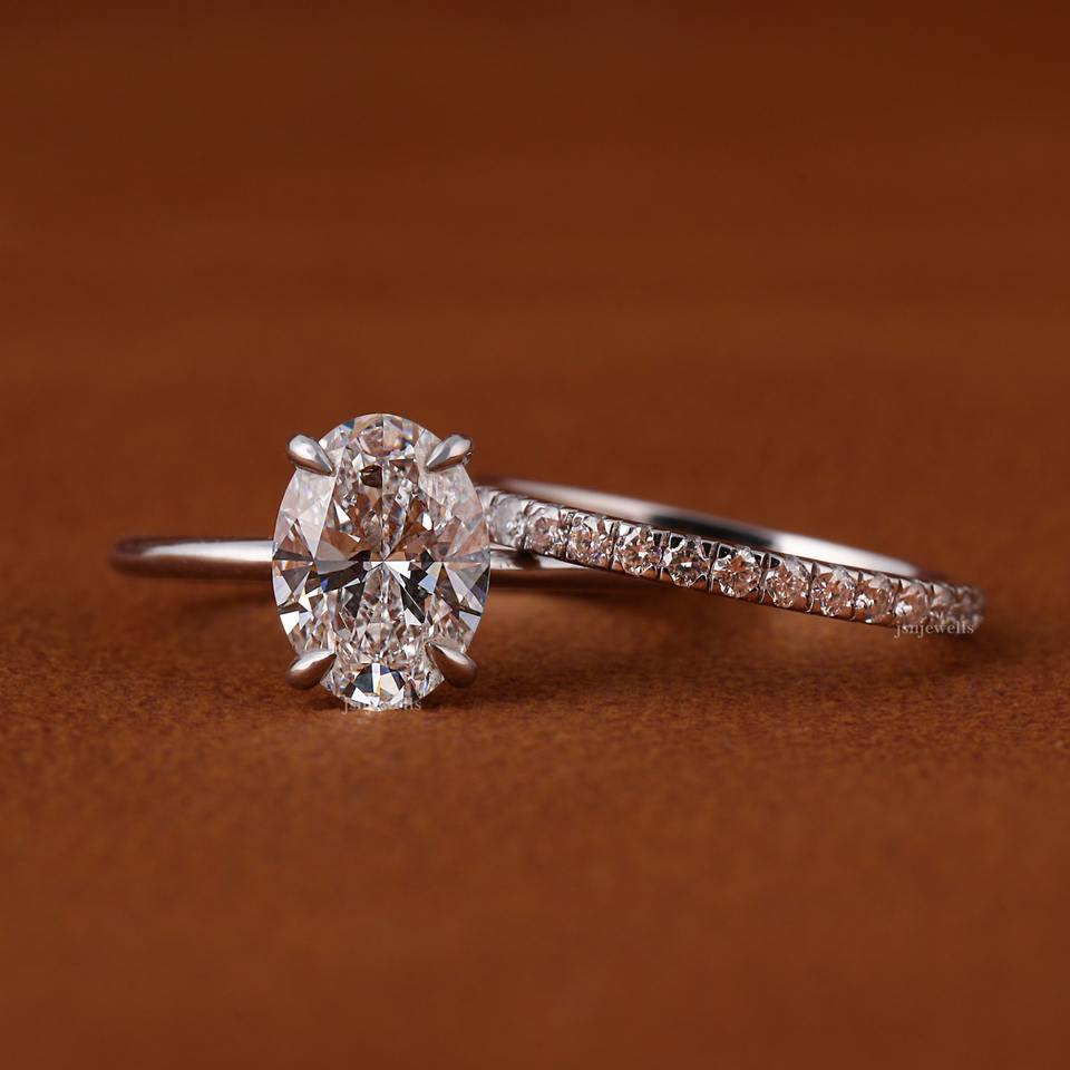 แหวนหมั้นเพชรทรงรีสุดหรู ฝังเพชรแบบพาเว่ ตัวเรือนทองคำขาว 14K สำหรับผู้หญิง แหวนแต่งงานแบบโซลิแทร์สุดสง่างาม ของขวัญสำหรับเจ้าสาว