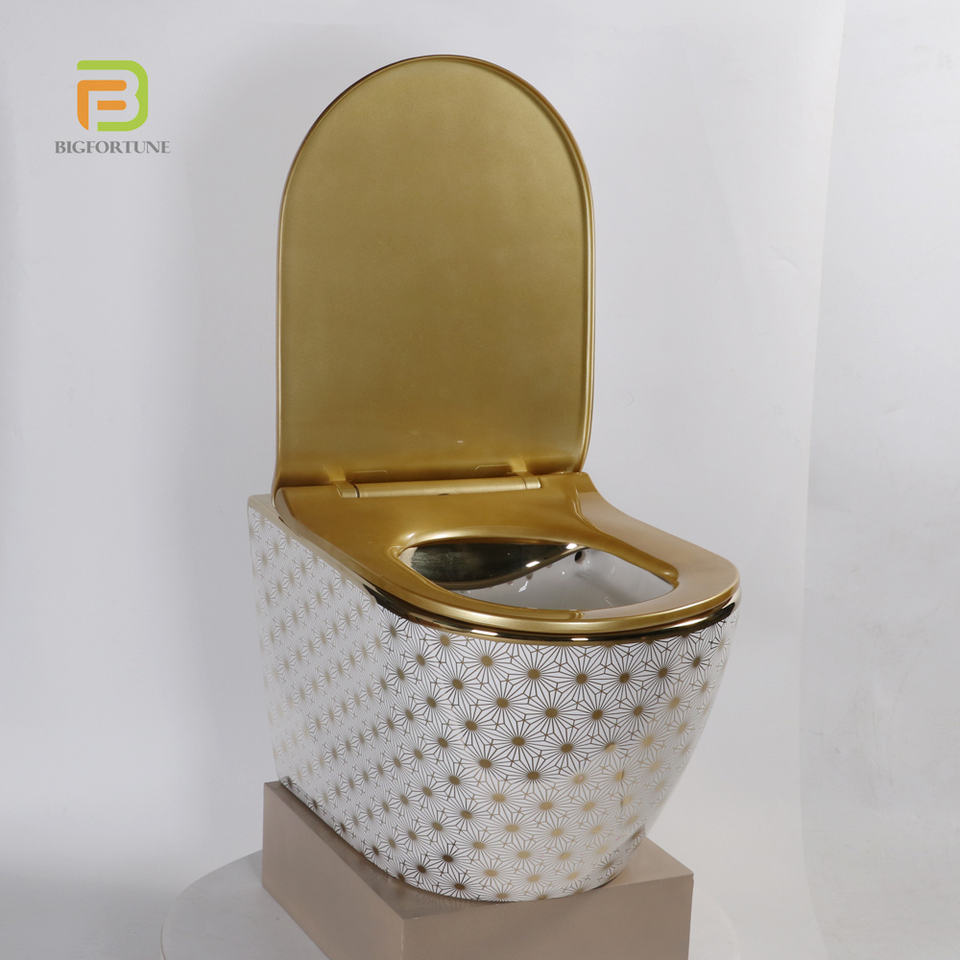 โถสุขภัณฑ์แบบแขวนผนังหรูหรา รุ่น P Trap สีทอง พร้อมฝาปิดแบบลอยตัว วัสดุเซรามิกไร้ขอบ