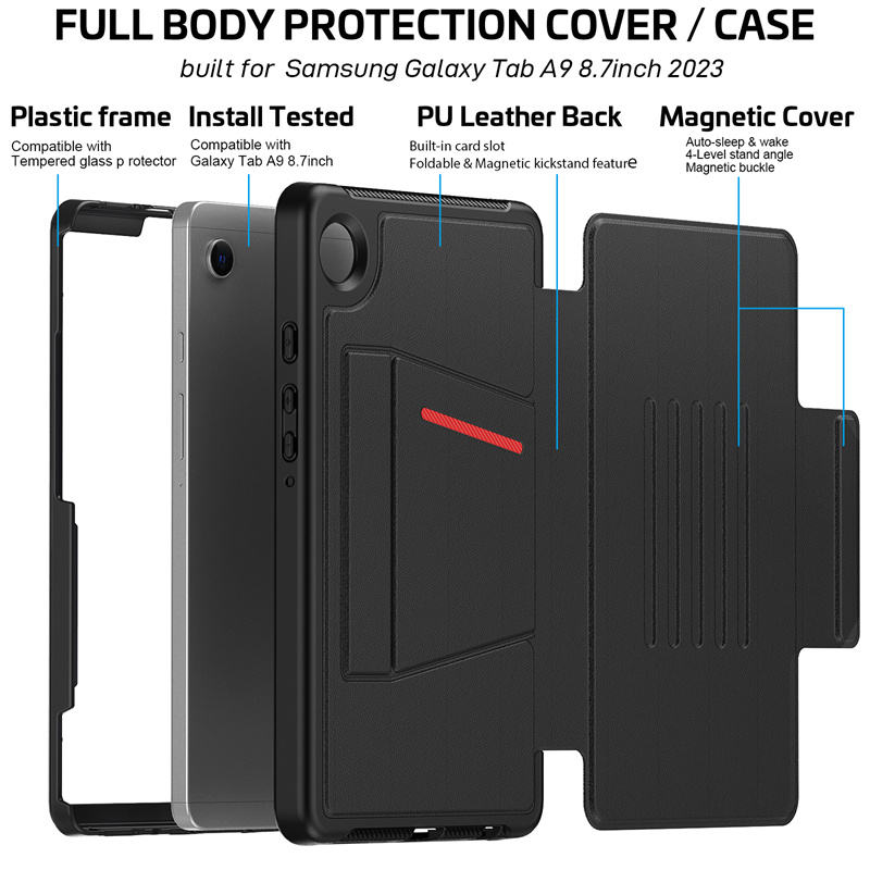 Luxury PUหนังWake Up Flip BookสําหรับSamsung Tab A9 8.7 นิ้ว2023 X115 แม่เหล็กFolioกระเป๋าขาตั้งฝาครอบ