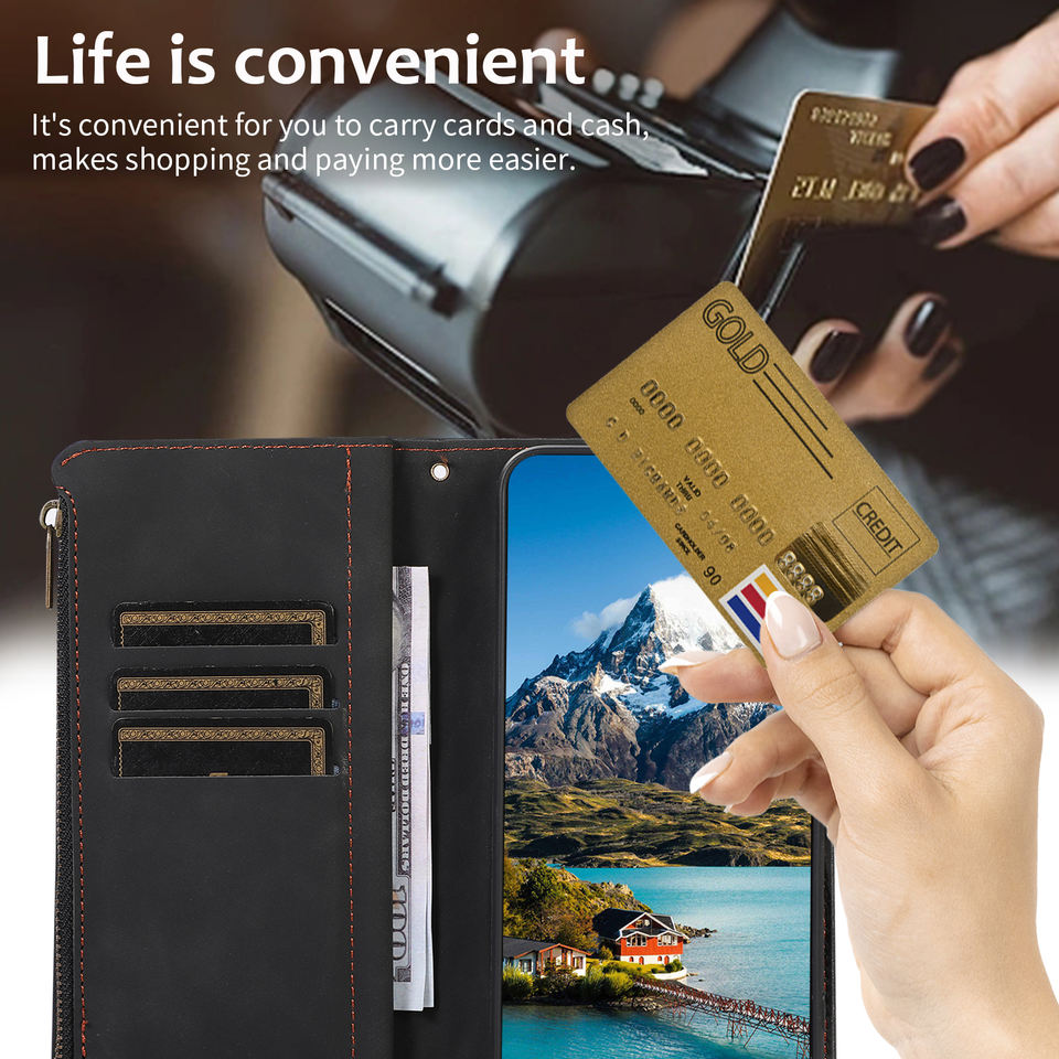 เคสโทรศัพท์มือถือกระเป๋าสตางค์หนัง PU สุดหรูสำหรับ Xiaomi redmi Note 14 Pro PLUS 5G 15C 14C A5 A3ที่มีซิปด้านหลังมีที่ใส่บัตร9ใบ