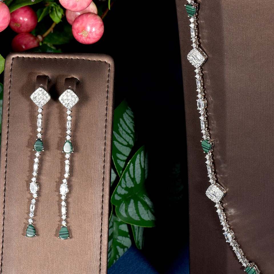 ชุดเครื่องประดับเซอร์โคเนียลูกบาศก์สไตล์วังสุดหรูต่างหูสร้อยคอเครื่องประดับเจ้าสาว S-60ของขวัญ
