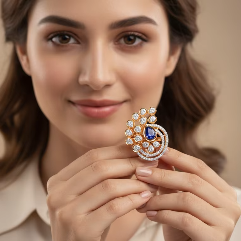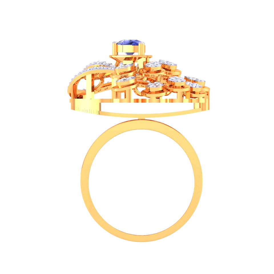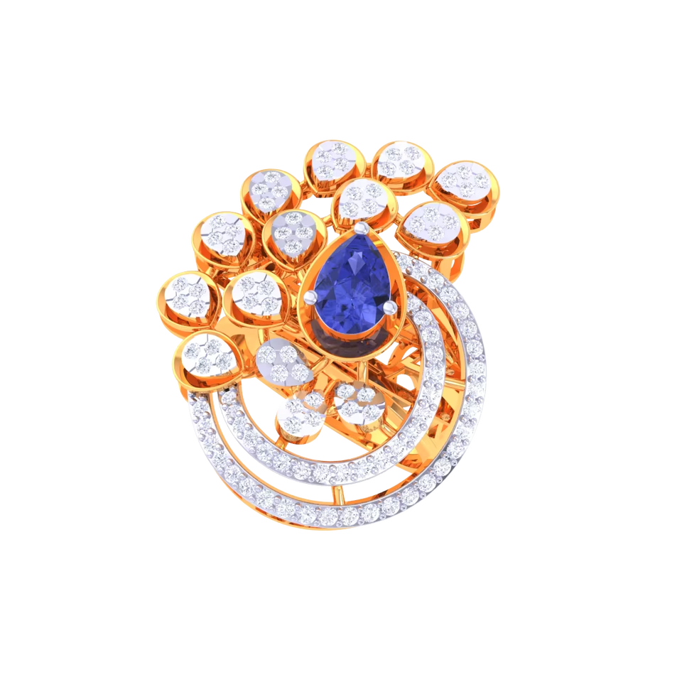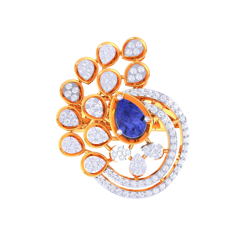 แหวนทองลายนกยูงสุดหรูสำหรับผู้หญิง ประดับด้วยไพลินสีน้ำเงินทรงลูกแพร์ เหมาะสำหรับงานแต่งงาน