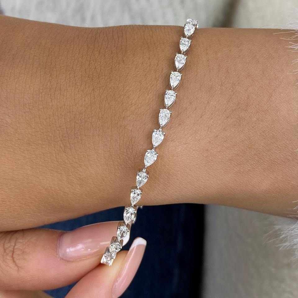 สร้อยข้อมือเพชรทรงลูกแพร์สังเคราะห์สุดหรู 14K ทองคำขาว 4.3 กะรัต E VVS รับรองโดย IGI เครื่องประดับสวยงาม ไอเดียของขวัญสำหรับเธอ