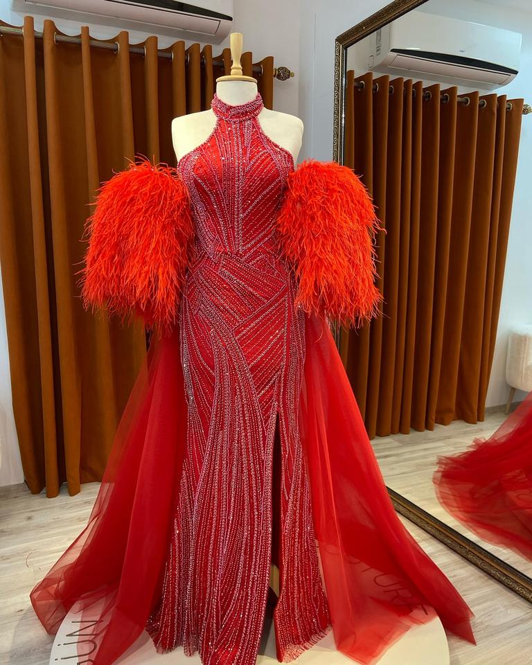 ชุดเดรสงานเลี้ยงผ้าซาตินเนื้อนุ่มประดับมุกและลูกปัด ระบายอากาศได้ดี ยาวกรอมพื้น พร้อมเอวธรรมชาติและลายพิมพ์ดอกไม้