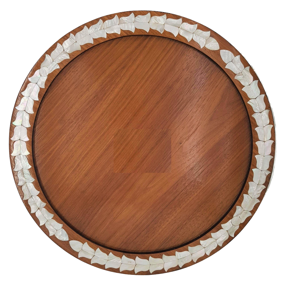 Luxury Polished Wooden Serving Plate Intricate Pearl Inlay Eco-Friendly Lightweight Decorative Tray Tabletop Eid Celebrations