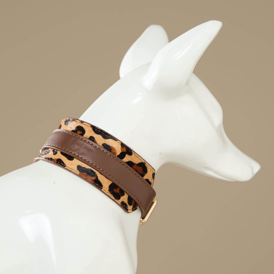 ปลอกคอสัตว์เลี้ยงหรูหราปรับได้นุ่มและสบายหนังวัวแท้มีสไตล์ปลอกคอสุนัขลายทาง