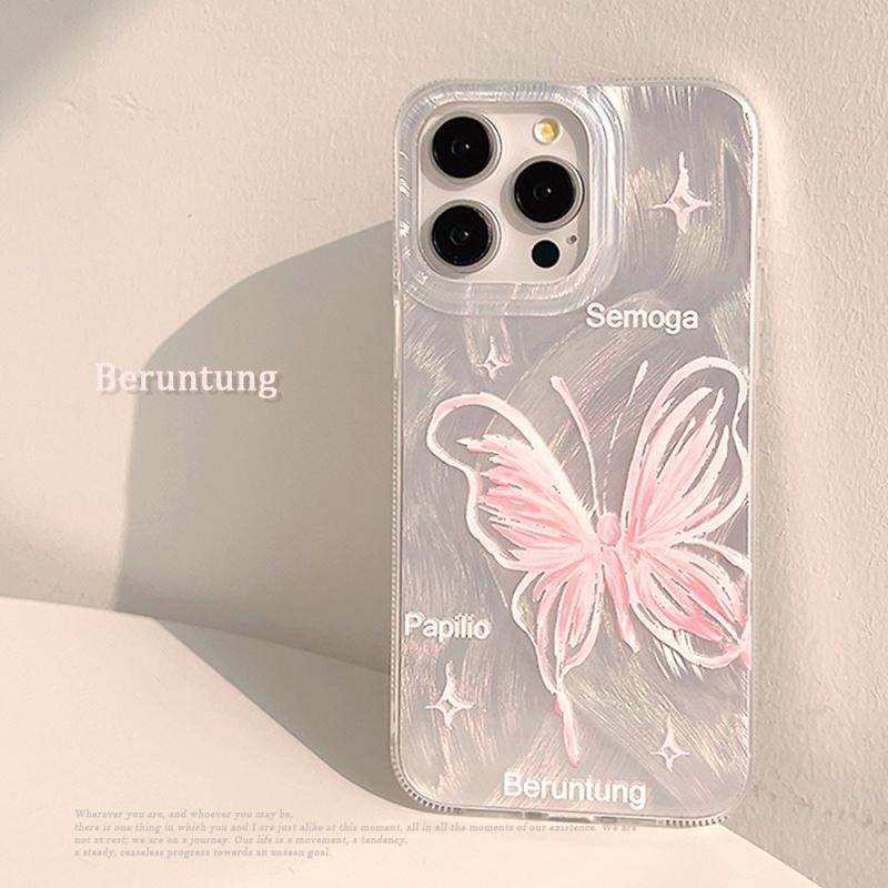 Luxury Pink Gradient Butterfly Pattern Phone Case for iPhone 16 15 14 13 12 11 Mini Pro Max X XR Plus Pattern Shockproof Cover
