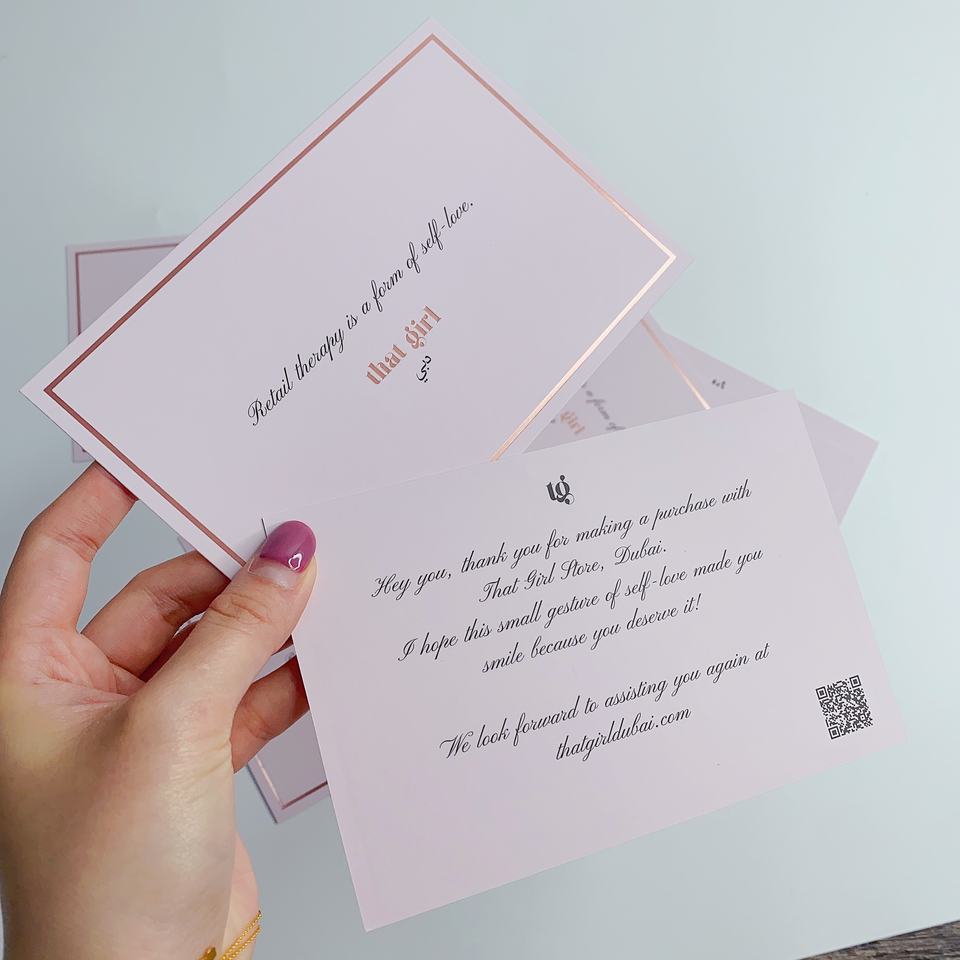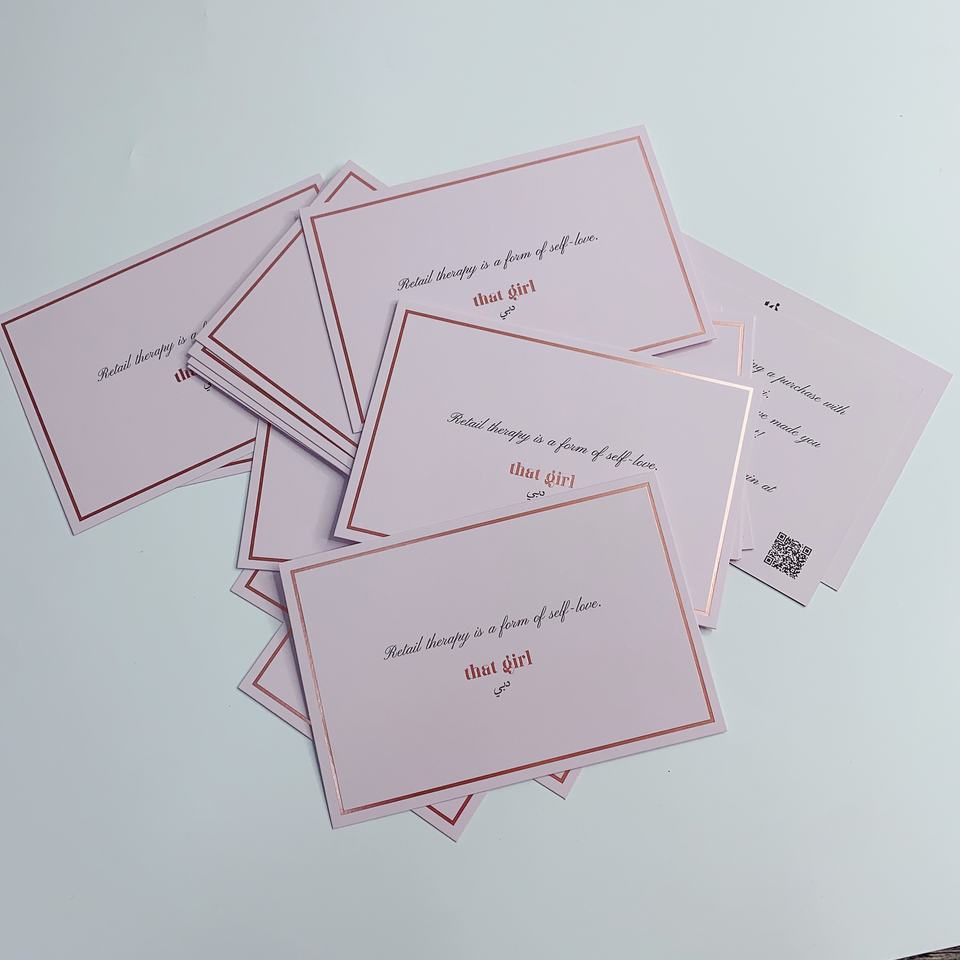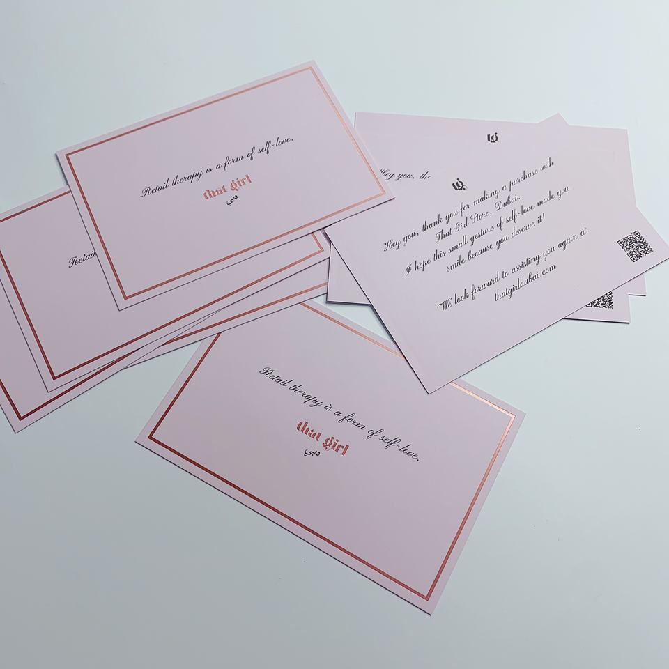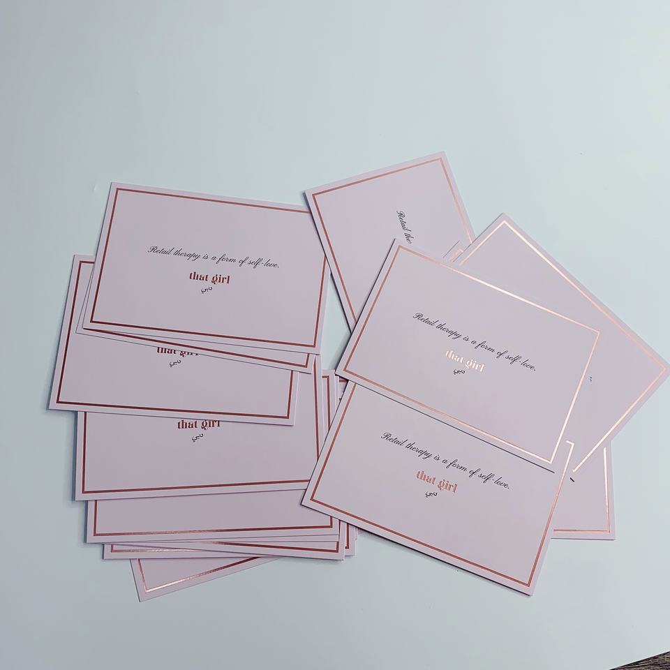 การ์ดกระดาษสีชมพูหรูหราพร้อมลายปั๊มฟอยล์โรสโกลด์ - การ์ดขอบคุณแบบกำหนดเองสำหรับบรรจุภัณฑ์แบรนด์