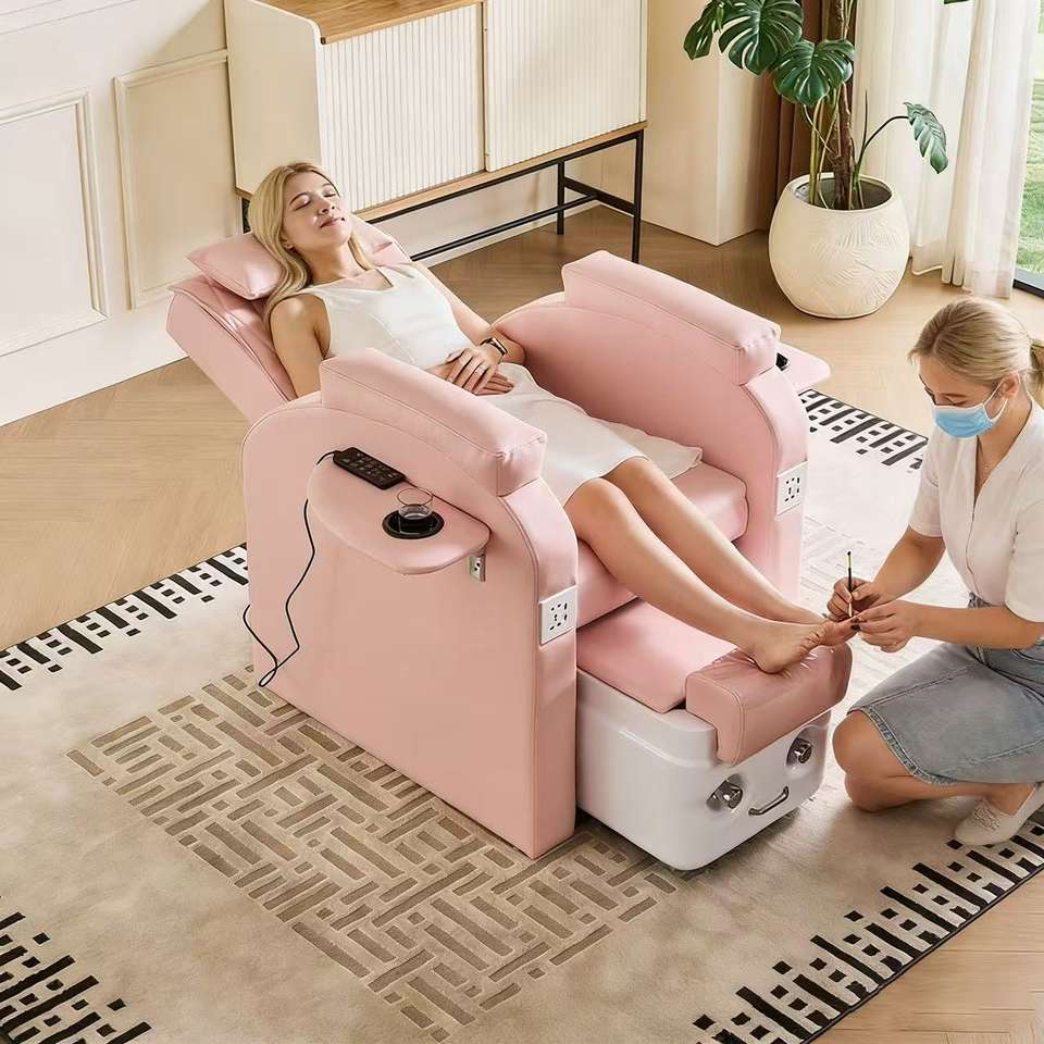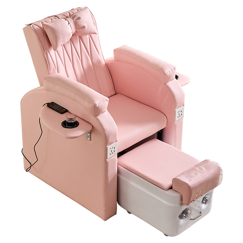 เก้าอี้นวดทำเล็บสีชมพูสุดหรู เก้าอี้นวดเท้าไฟฟ้าสำหรับร้านทำเล็บ สปาเท้า เก้าอี้ทำเล็บสไตล์โมเดิร์นสำหรับร้านเสริมสวยและร้านทำเล็บ