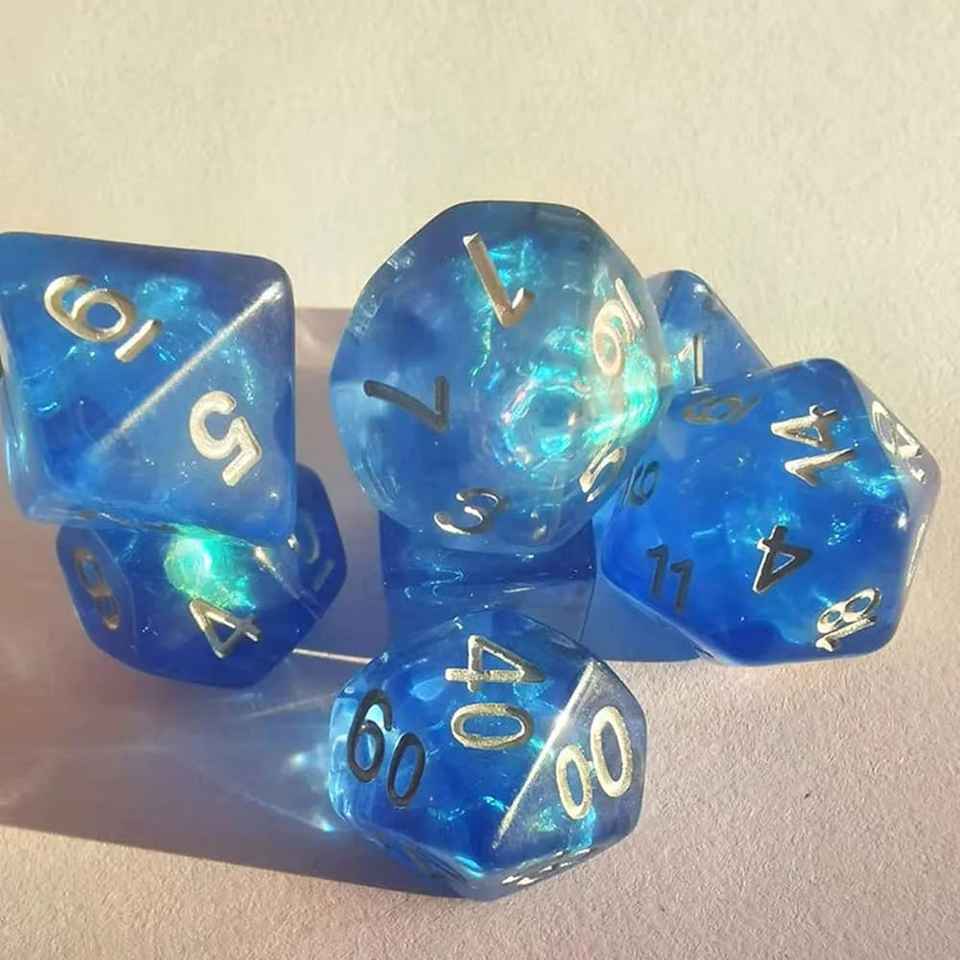 ชุดลูกเต๋าเรซิ่นสีชมพูหรูหรา 7 ชิ้น ลูกเต๋าโปร่งใสสำหรับเกม RPG พร้อมตัวเลขสีทอง สำหรับเกมกระดาน DND