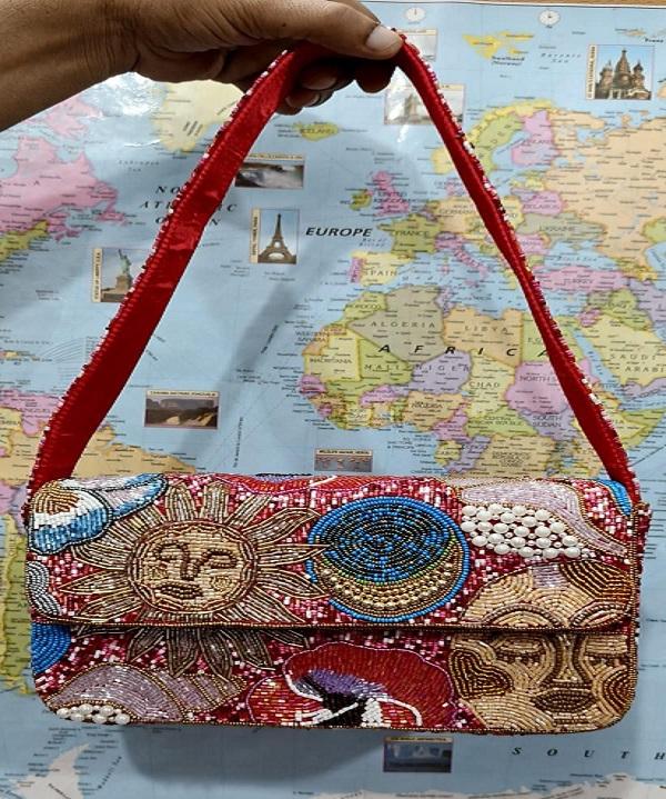 กระเป๋าถือลูกปัดสีชมพูหรูหราสำหรับผู้หญิง กระเป๋าถือลายลูกศร ทำมือ กระเป๋าโท้ทสำหรับงานปาร์ตี้แบบสั่งทำ