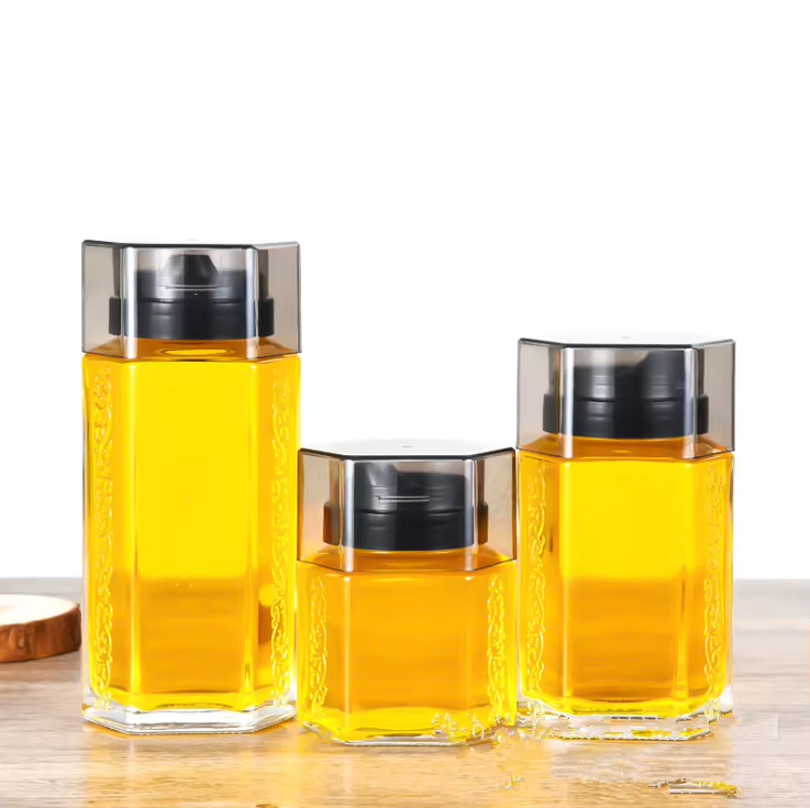 ขวดพลาสติกหรูหราสำหรับใส่น้ำผึ้ง ขนาด 3 ออนซ์ 750 มล. ขวดแก้วสำหรับน้ำผึ้ง ดีไซน์สวยงามน่ารัก รูปทรงสี่เหลี่ยมแบบรังผึ้ง