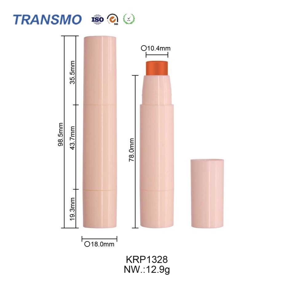 บรรจุภัณฑ์ลิปบาล์มแบบแท่งพลาสติกทรงกลมสุดหรู บรรจุภัณฑ์บลัชออนแบบแท่ง บรรจุภัณฑ์ลิปสติกแบบหลอด สีอ่อน บรรจุภัณฑ์ลิปบาล์มและบลัชออนแบบหลอดสั่งทำพิเศษ