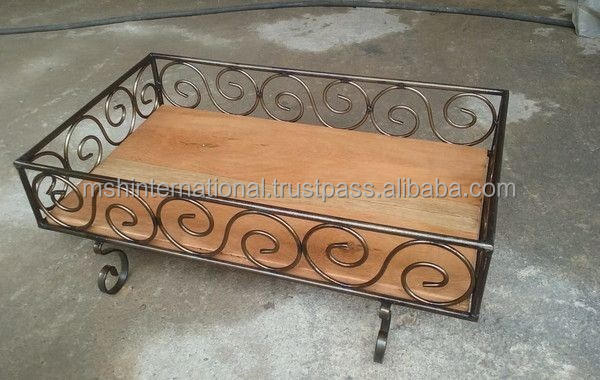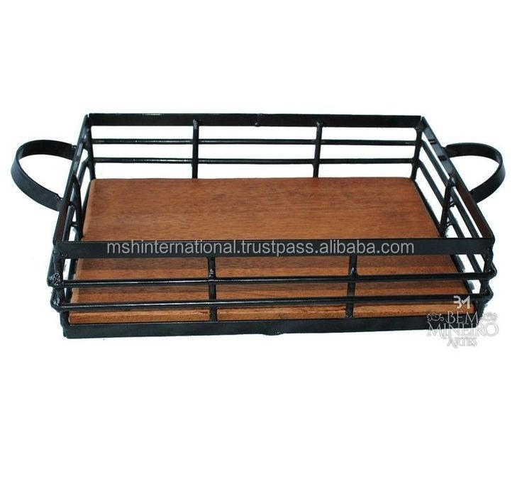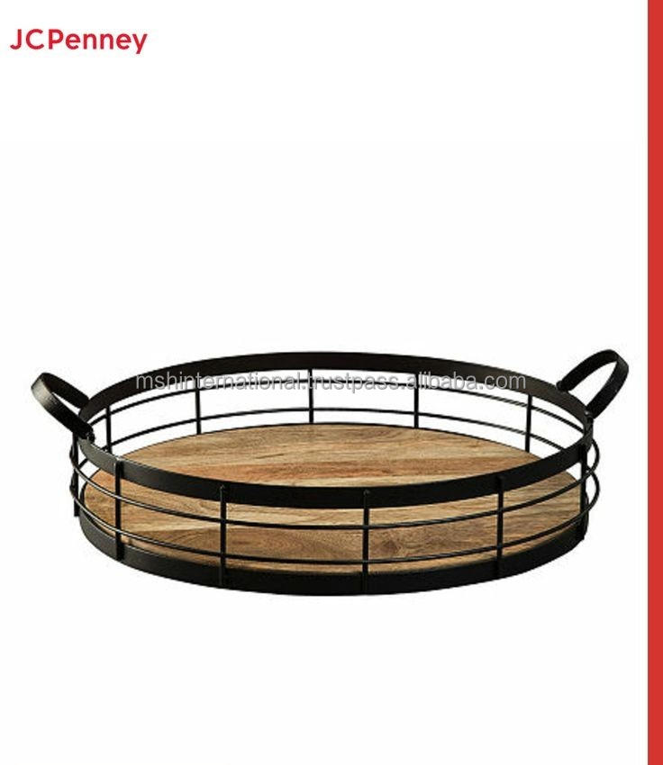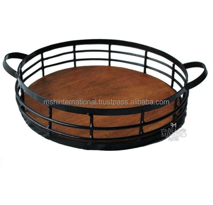 จานโลหะหรูหราไม้และลวดที่ให้บริการถาดกลมสำหรับห้องครัวที่บ้านเป็นจานตกแต่งและจานสีดำ