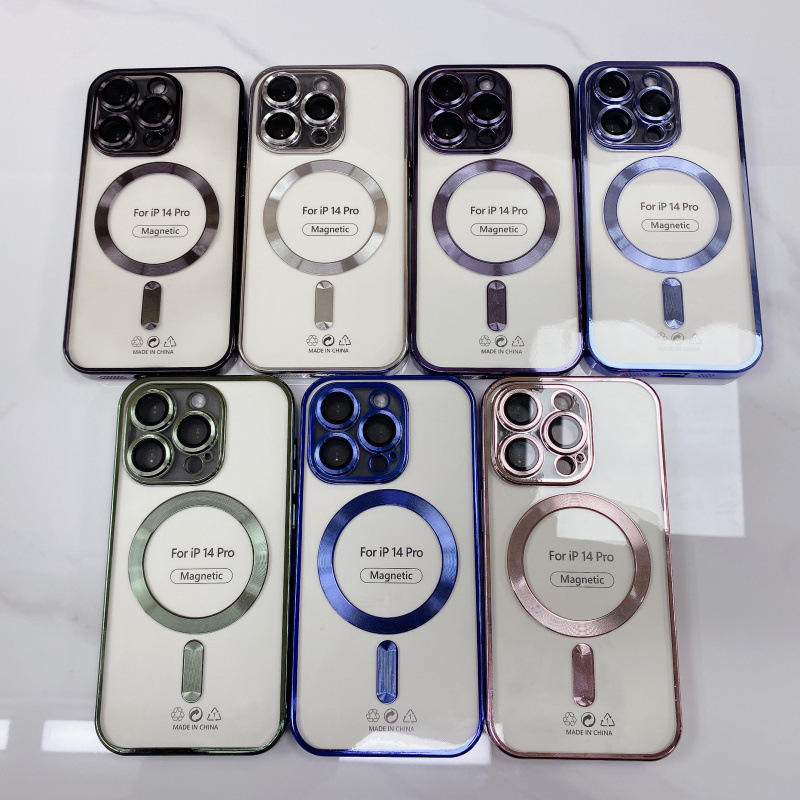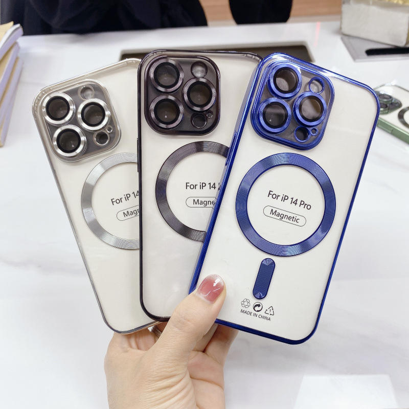เคสชาร์จไร้สายระบบแม่เหล็ก,เคสใสเคลือบหรูหราสำหรับ iPhone 14 13 12 11 Pro Max ฝาครอบป้องกันเลนส์ซิลิโคนเนื้อนิ่ม