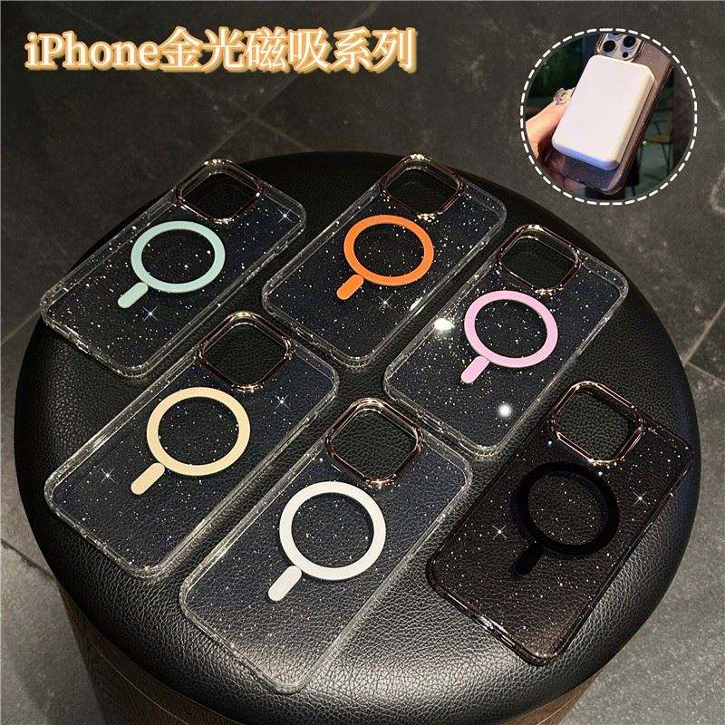 เคสโทรศัพท์แบบไร้สายชาร์จได้ รุ่นหรูหรา ประดับกลิตเตอร์ สำหรับ iPhone 12 13 14 15 16 17 Pro Max Plus แบบแม่เหล็ก ใส แข็ง ประดับคริสตัล