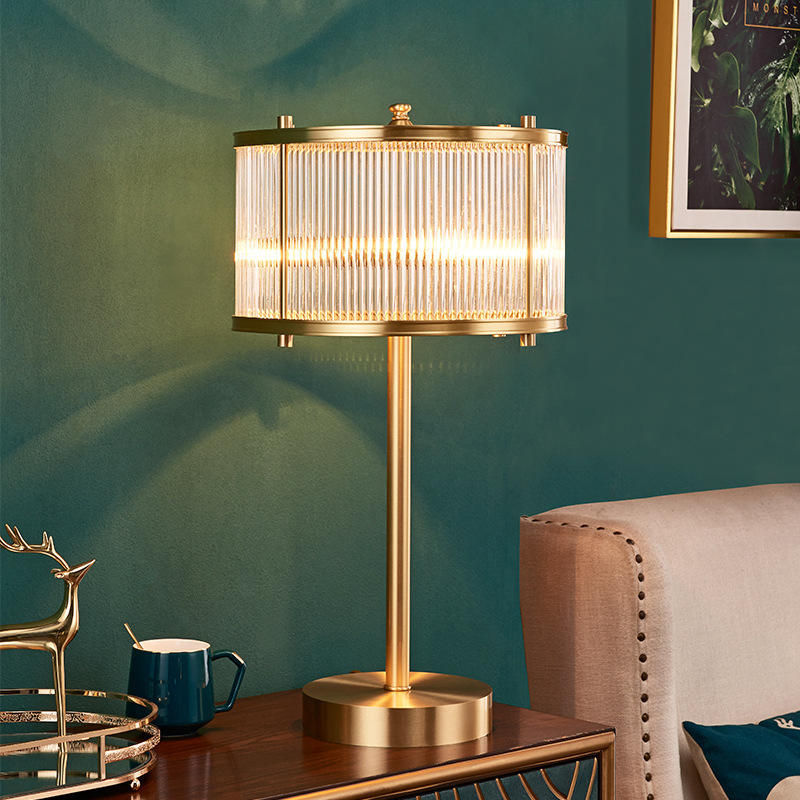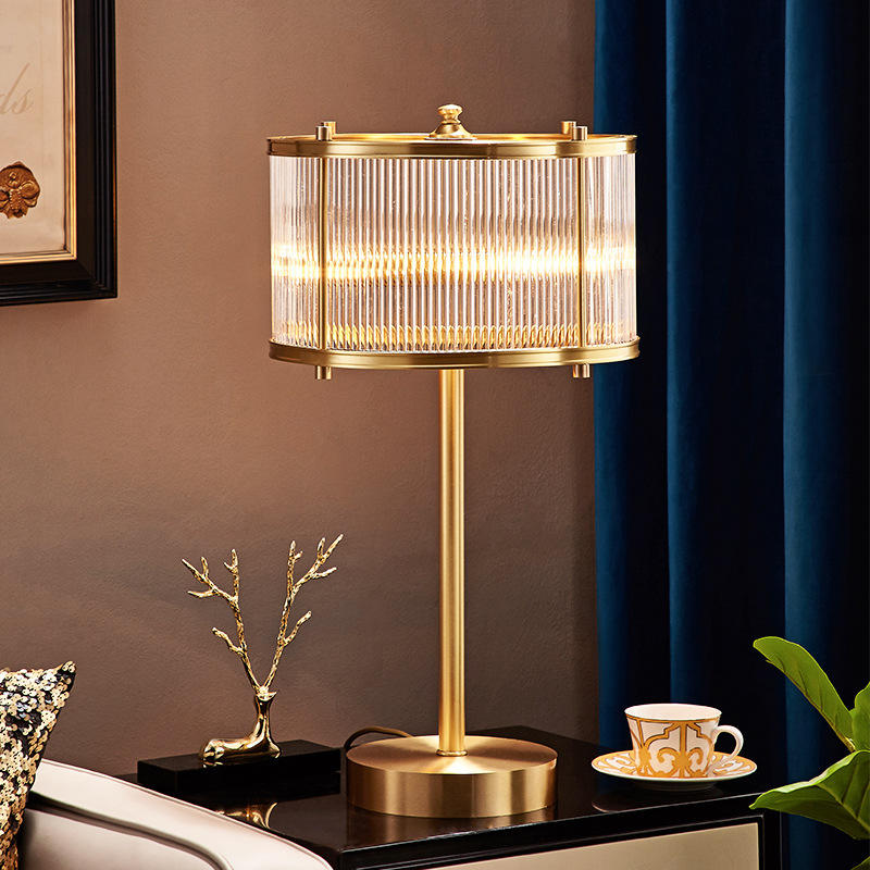 โคมไฟตั้งโต๊ะคริสตัลทองแดงสไตล์โพสต์โมเดิร์นสุดหรู สไตล์อเมริกัน สำหรับห้องนอน ห้องนั่งเล่น ตกแต่งบ้านสไตล์ยุโรป มินิมอล สร้างสรรค์