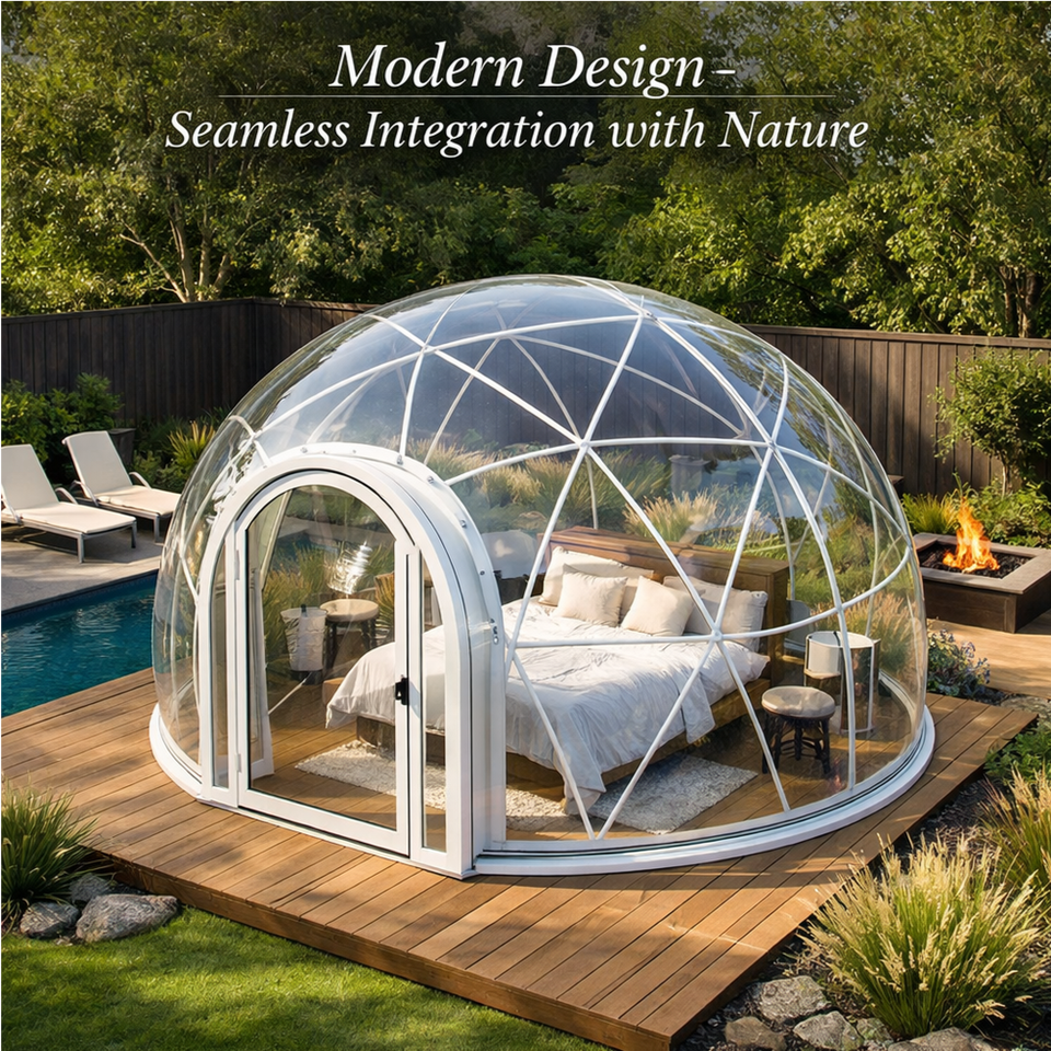บ้านโดมโพลีคาร์บอเนตสำเร็จรูปสุดหรู สำหรับแกลมปิ้งระดับไฮเอนด์และร้านอาหาร