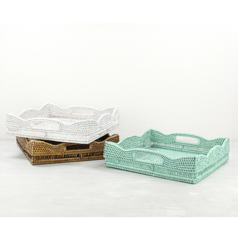 ถาดเสิร์ฟทรงสี่เหลี่ยมผืนผ้าหวายคุณภาพพรีเมียมหรูหรา ทำด้วยมือจากหวายธรรมชาติ พร้อมหูจับไม้ สำหรับจัดระเบียบของว่าง ชา ขนม ใช้ในบ้าน โต๊ะอาหาร