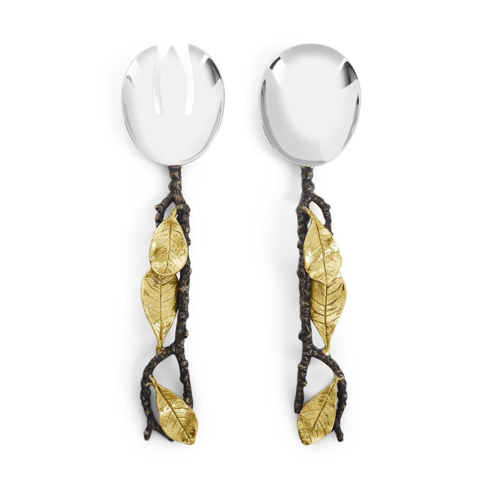 ชุดช้อนส้อมสแตนเลสชุบนิกเกิลสีเงินพรีเมียมหรูหรา ดีไซน์เอเชียเซน รูปทรงใบไม้ทันสมัย ของขวัญสุดพิเศษ