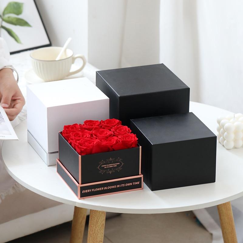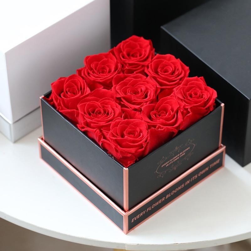 กุหลาบที่เก็บรักษาไว้หรูหราในกล่องสี่เหลี่ยมสีแดงกุหลาบตกแต่งสำหรับวันเกิดวันวาเลนไทน์ของขวัญคริสต์มาสนิรันดร์ยาวนาน3-5ปี
