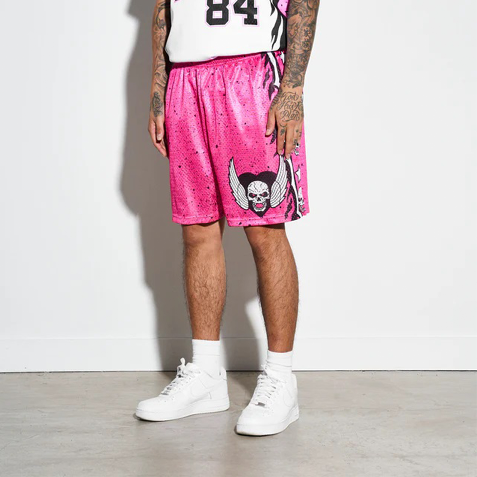 กางเกงขาสั้นผ้าตาข่ายลวดลาย