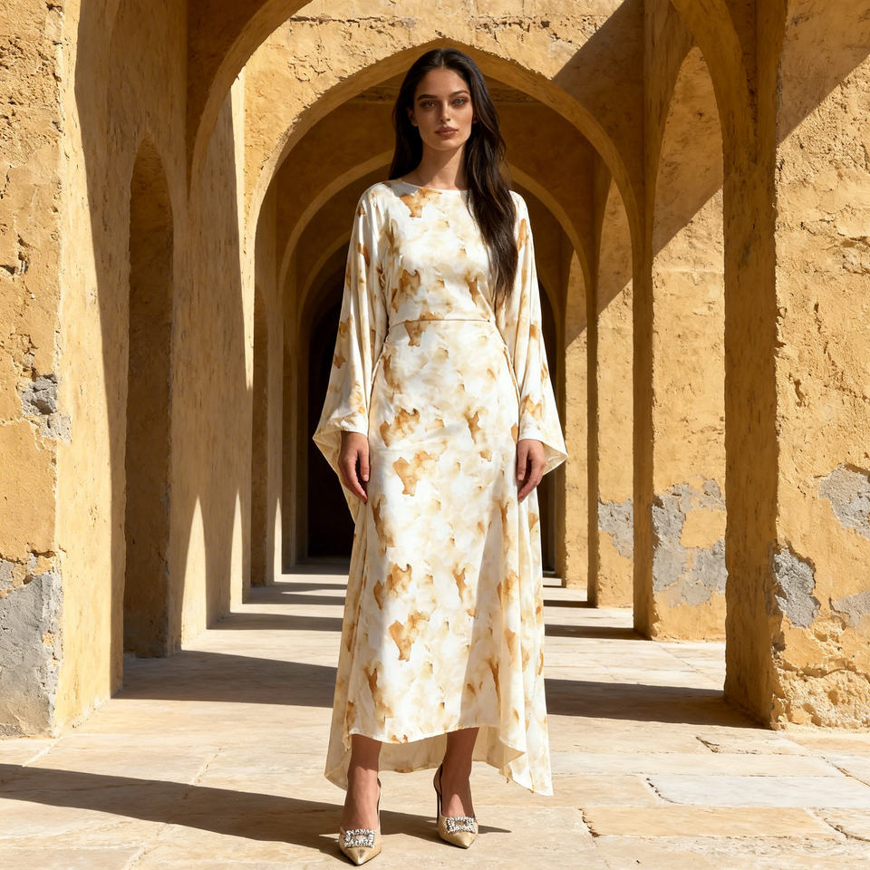 ชุดอาบายะห์ผ้าโพลีเอสเตอร์พิมพ์ลายหรูหราสำหรับผู้หญิงมุสลิม ชุดเดรสออกงาน ขายส่ง รับผลิตแบบ OEM