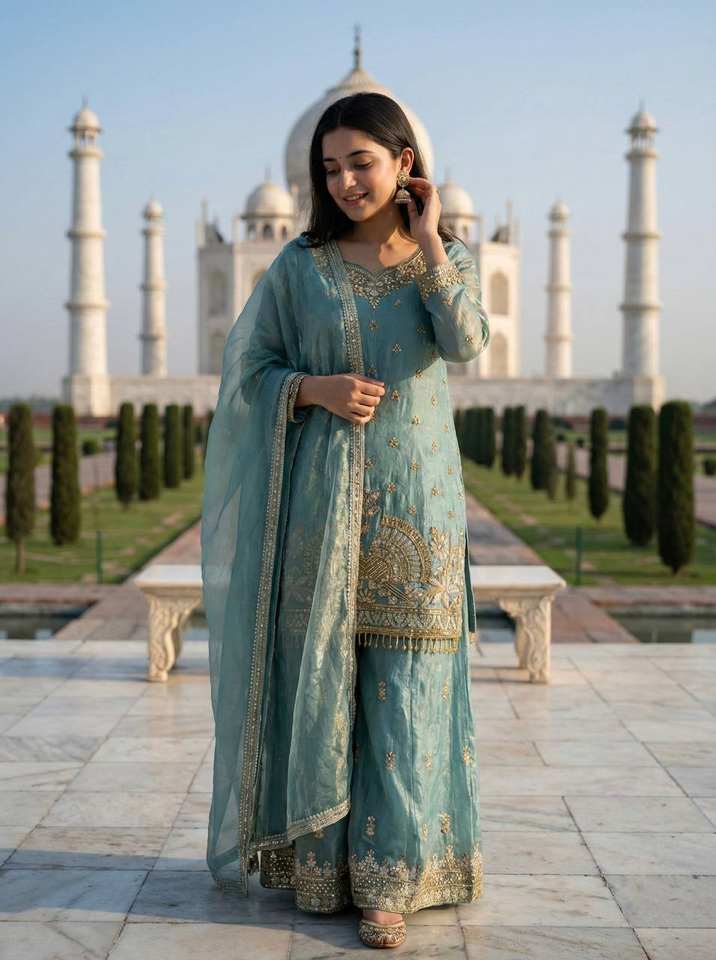 ชุดสูทชาราผ้าไหมแท้หรูหราพร้อมงานปักและดีไซน์เนอร์