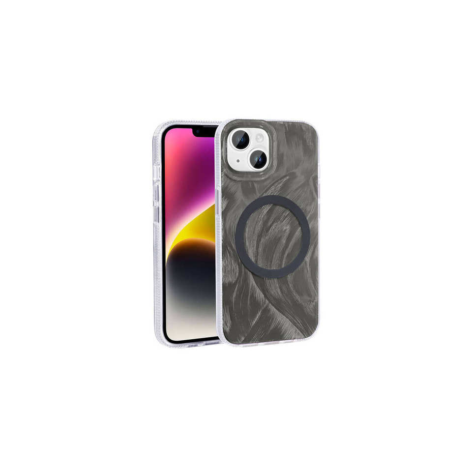 เคสซิลิโคนลายพาเลท ASMA สีม่วงหรูหรา รองรับ Magsafe สำหรับ iPhone 15 ดีไซน์ลายพู่กัน ป้องกันด้านหลัง