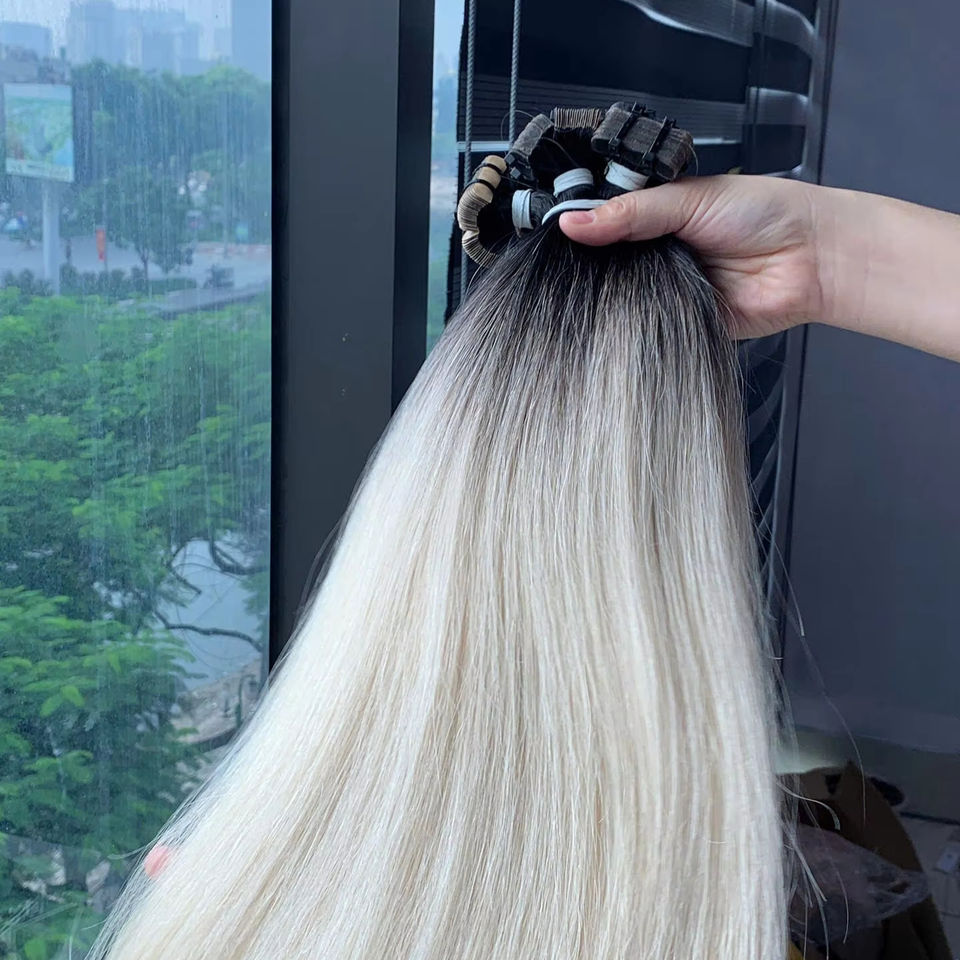 เทปเส้นผมตรงสีขาวแบบหรูหราคุณภาพระดับเวียดนามผู้บริจาคแบบดิบเดี่ยวปลายสองด้านเรียบ
